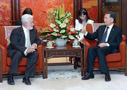 9月2日,中国国务院副总理汪洋在北京中南海会见国际展览局秘书长洛塞泰斯。新华社记者 刘建生 摄