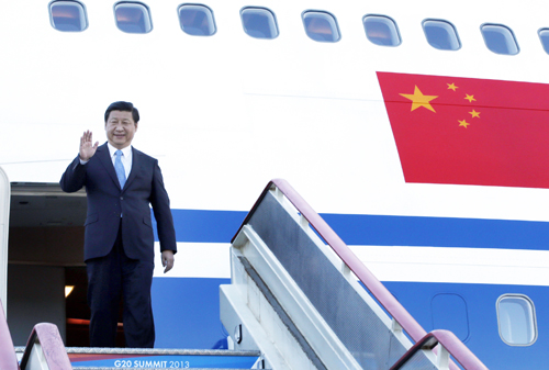 9月4日,国家主席习近平抵达俄罗斯圣彼得堡,出席5日至6日举行的二十国集团领导人第八次峰会。 新华社记者 鞠鹏 摄