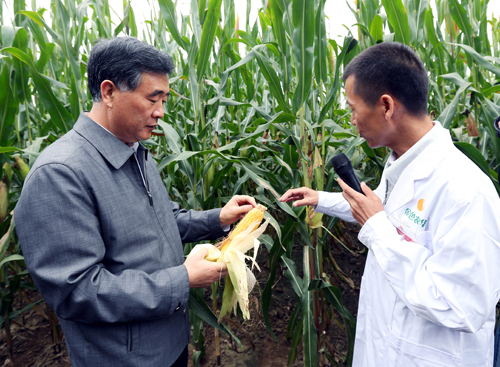 9月29日,国务院副总理汪洋在北京市考察现代种业发展工作。这是汪洋在金色农华种业科技股份有限公司玉米种子试验田考察。 新华社记者姚大伟 摄