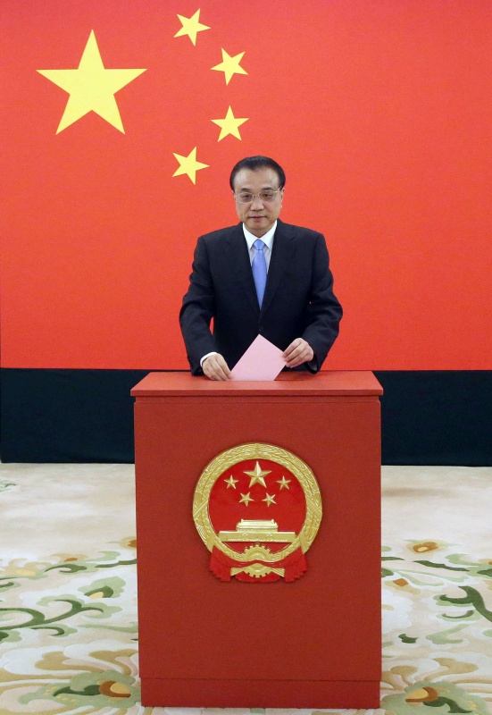 11月15日是北京市区、乡镇两级人大代表换届选举投票日。这是中共中央政治局常委、国务院总理李克强在西城区文津街选区紫光阁投票站投票。新华社记者 刘卫兵 摄