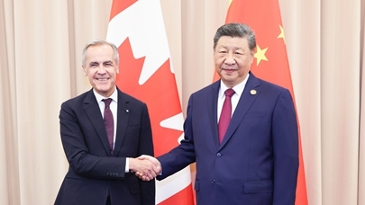 当地时间10月31日下午,国家主席习近平在韩国庆州出席亚太经合组织第三十二次领导人非正式会议期间会见加拿大总理卡尼。