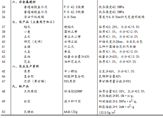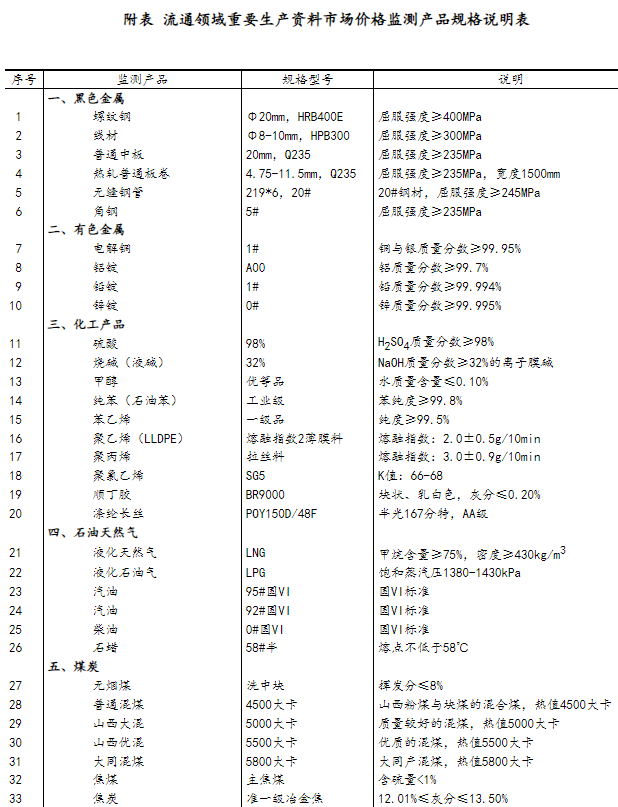 流通领域重要生产资料市场价格监测内容包括9大类50种产品的价格。类别与产品规格说明详见附表。