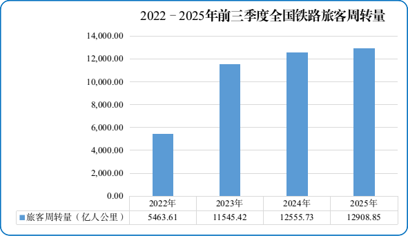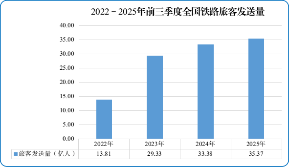 图1 2022—2025年前三季度全国铁路旅客发送量