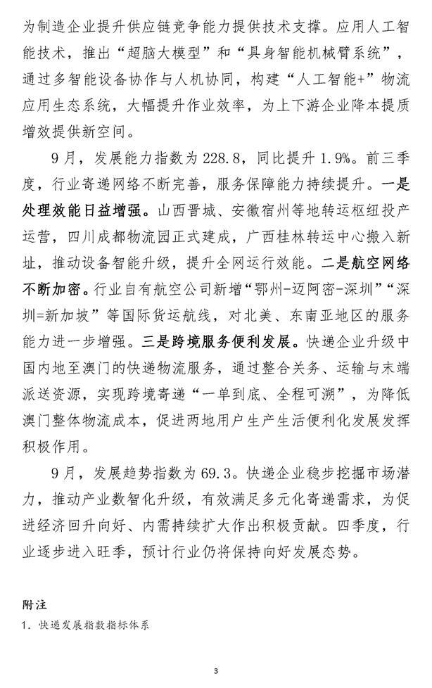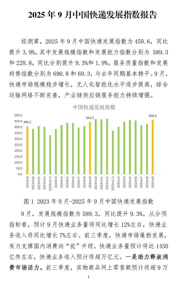 2025年9月中国快递发展指数报告
