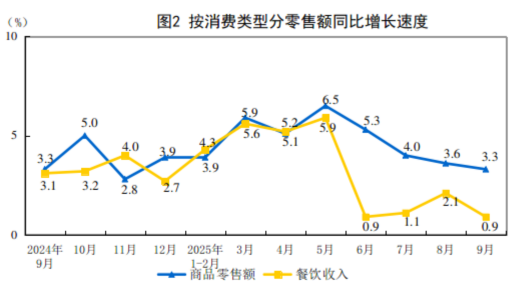 2025年9月份社会消费品零售总额增长3.0%