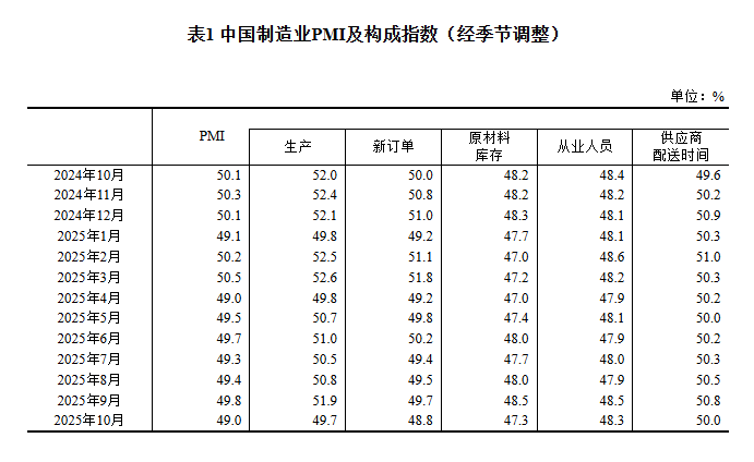 10月份,制造业采购经理指数(PMI)为49.0%,比上月下降0.8个百分点,制造业景气水平有所回落。