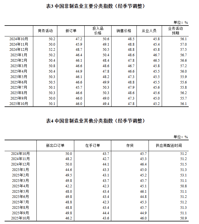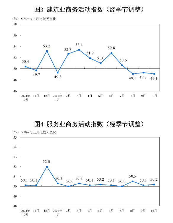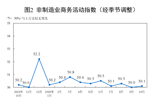 10月份,非制造业商务活动指数为50.1%,比上月上升0.1个百分点,升至扩张区间。