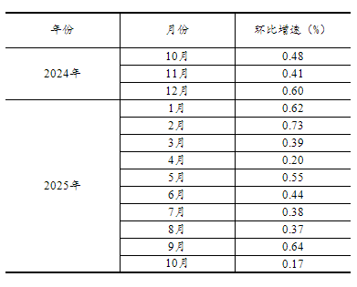 根据季节调整模型自动修正结果,对2024年10月至2025年9月份规模以上工业增加值环比增速进行修订。修订结果及2025年10月份环比数据如下: