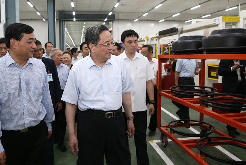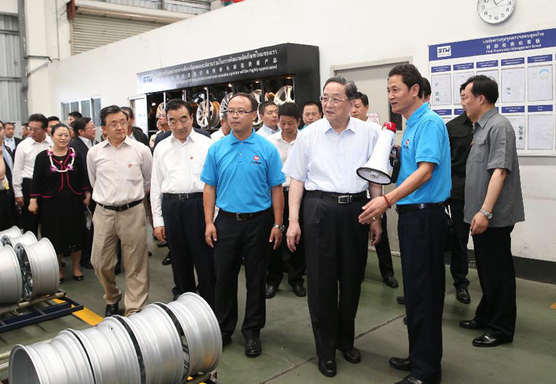 应泰国立法议会主席蓬贝邀请,全国政协主席俞正声7月21日至24日对泰国进行正式友好访问,在曼谷分别会见国王御代表诗琳通公主、总理巴育、枢密院主席炳,并与立法会主席蓬贝举行会谈。这是7月22日,俞正声考察泰中罗勇工业园。新华社记者马占成摄