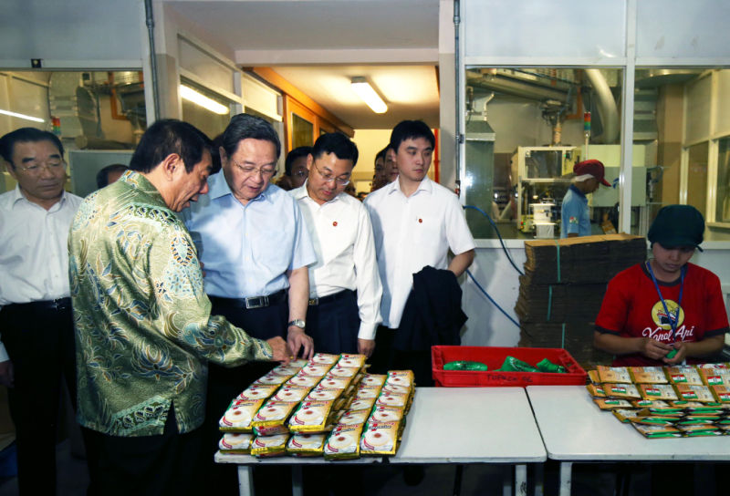 7月26日,中国全国政协主席俞正声在印尼参观华人企业火船咖啡厂。新华社记者 姚大伟 摄 在雅加达期间,俞正声还考察了华为印尼子公司。他积极评价华为公司在印尼发展成绩,希望华为为中国与印尼经贸合作做出新贡献,继续通过履行企业责任回馈印尼社会。