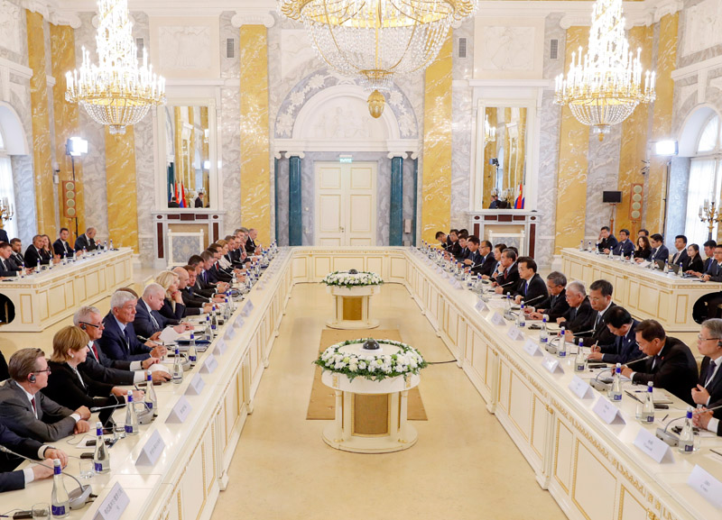 国务院总理李克强当地时间9月17日下午在圣彼得堡同俄罗斯总理梅德韦杰夫共同主持中俄总理第二十四次定期会晤。
