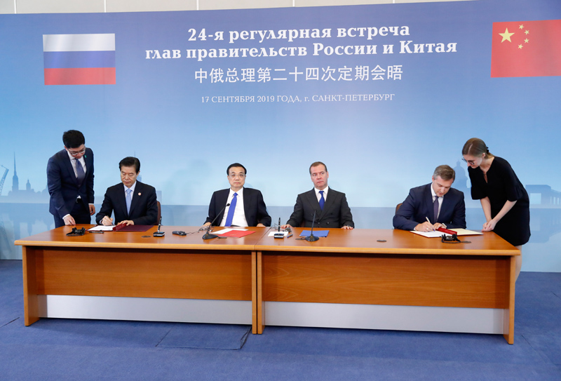 会晤后,李克强与梅德韦杰夫签署了《中俄总理第二十四次定期会晤联合公报》,并共同见证投资、经贸、农业、核能、航天、科技、数字经济等领域十余项双边合作文件的签署。