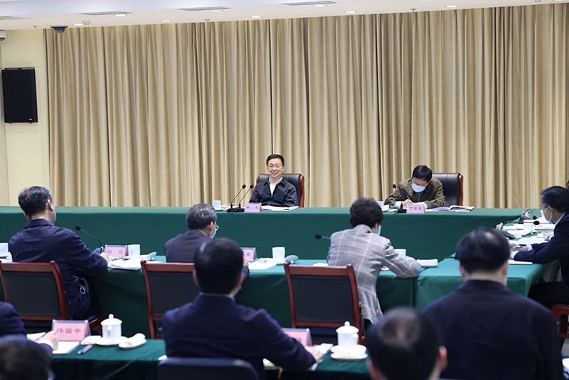 3月23日,中共中央政治局常委、国务院副总理韩正在中国财政科学研究院召开财税工作座谈会。新华社记者 丁海涛 摄