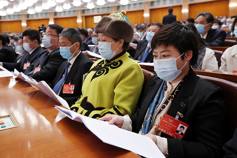3月7日,全国政协十三届五次会议在北京人民大会堂举行第二次全体会议。这是委员们在认真听会。