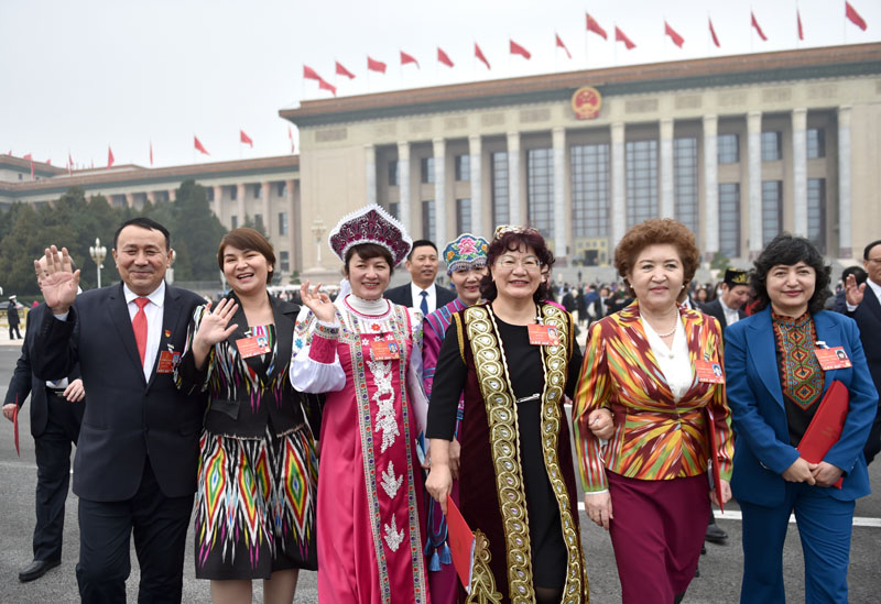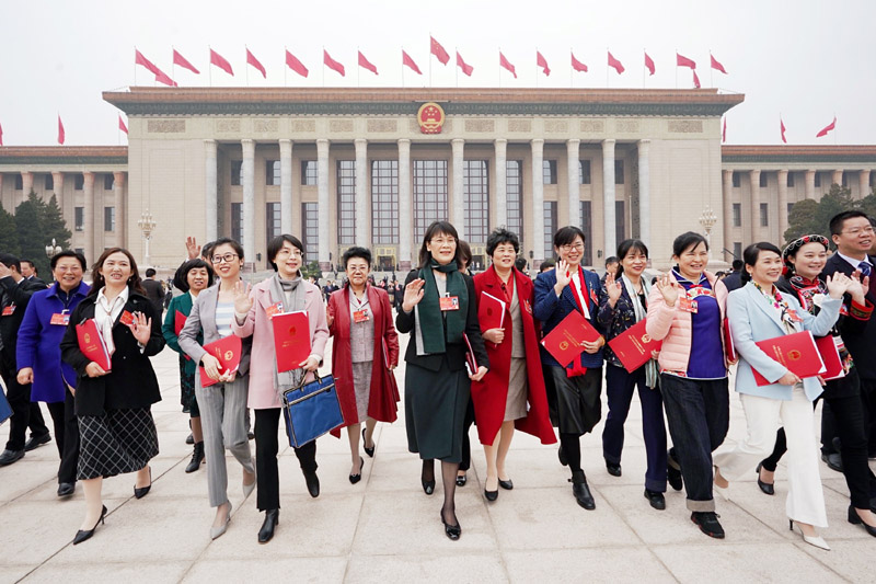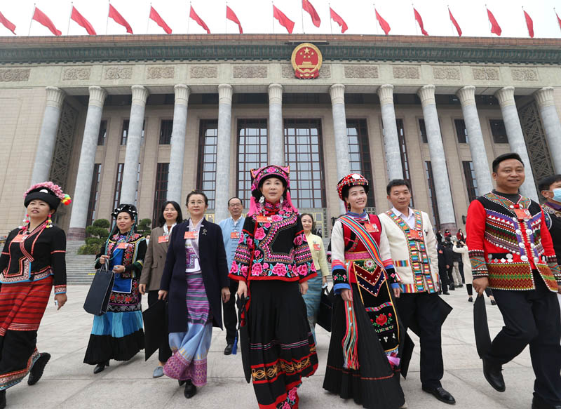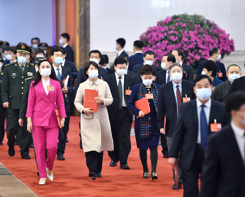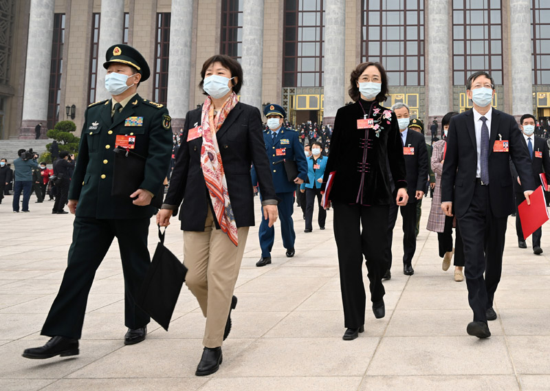 3月11日,第十三届全国人民代表大会第五次会议在北京人民大会堂举行闭幕会。这是闭幕会后,代表走出人民大会堂。
