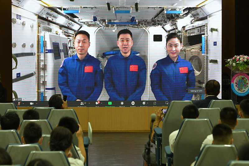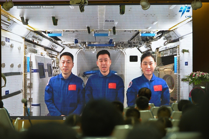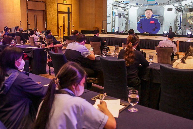 来自东盟国家的数百名青少年11月1日通过网络视频与神舟十四号航天员乘组进行了一场“天宫对话”。
