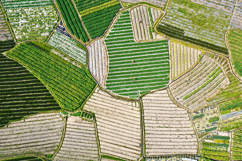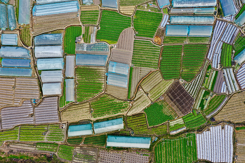2月26日拍摄的福州市闽侯县南通镇蔬菜基地景观(无人机照片)。