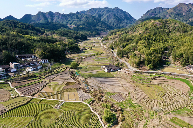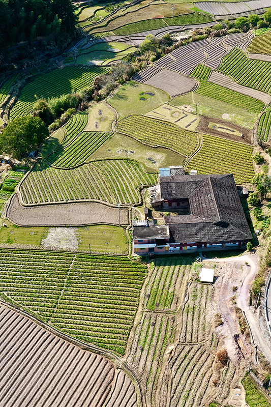 2月24日拍摄的福州市永泰县盖洋乡盖洋村一处田地(无人机照片)。