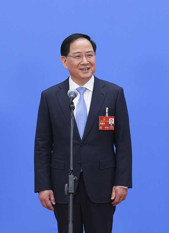 3月5日,第十四届全国人民代表大会第一次会议举行首场“部长通道”采访活动。这是工业和信息化部部长金壮龙接受媒体采访。