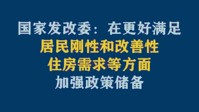 国家发改委:在更好满足居民刚性和改善性住房需求等方面加强政策储备