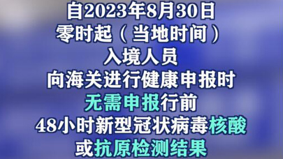 海关总署:8月30日起,来华人员无需进行新冠病毒检测