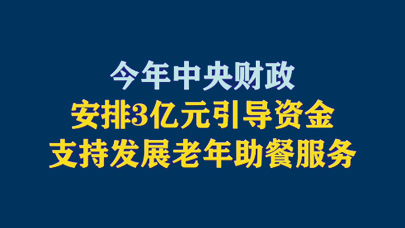 今年中央财政安排3亿元引导资金,支持发展老年助餐服务