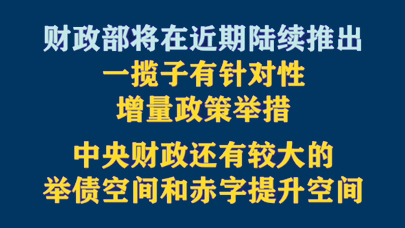 财政部将在近期陆续推出一揽子有针对性增量政策举措 中央财政还有较大的举债空间和赤字提升空间