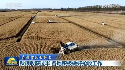 东北地区秋粮收获进入关键期。黑龙江全省农作物已收获超1.1亿亩。在虎林市,收割机将玉米摘棒、秸秆粉碎还田等工序一气呵成,今年,当地持续推广保护性耕作技术,不仅提升了耕作效率,也实现了经济与生态效益的双丰收。辽宁全省粮食收获进度过半。在彰武县玉米单产提升项目示范田里,收割机来回穿梭。目前,彰武县累计实施玉米单产提升工程45万亩。
