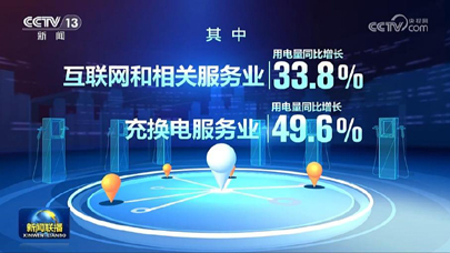 在国家促消费一系列政策拉动下,服务业用电量保持平稳快速增长。三季度,第三产业用电量同比增长8.3%。其中,互联网和相关服务业三季度用电量同比增长33.8%,充换电服务业用电量同比增长49.6%。