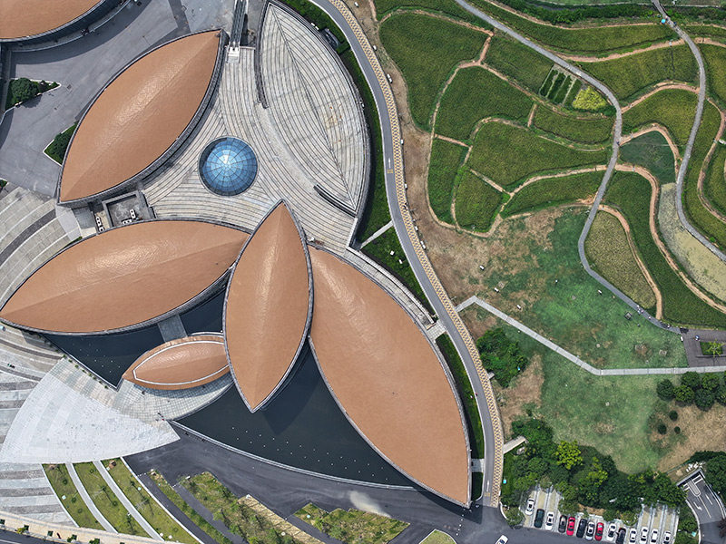 这是8月26日拍摄的长沙市芙蓉区的隆平水稻博物馆及旁边的稻田(无人机照片)。