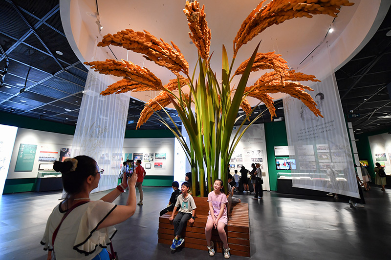 暑假期间,许多家长带着孩子来到湖南省长沙市芙蓉区的隆平水稻博物馆,了解水稻的生产过程和发展历史,感受粮食的来之不易,让孩子们从小树立爱粮、惜粮、节粮的意识。