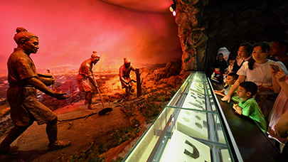 8月26日,在长沙市芙蓉区的隆平水稻博物馆,家长带着孩子参观“中国水稻历史文化陈列”。