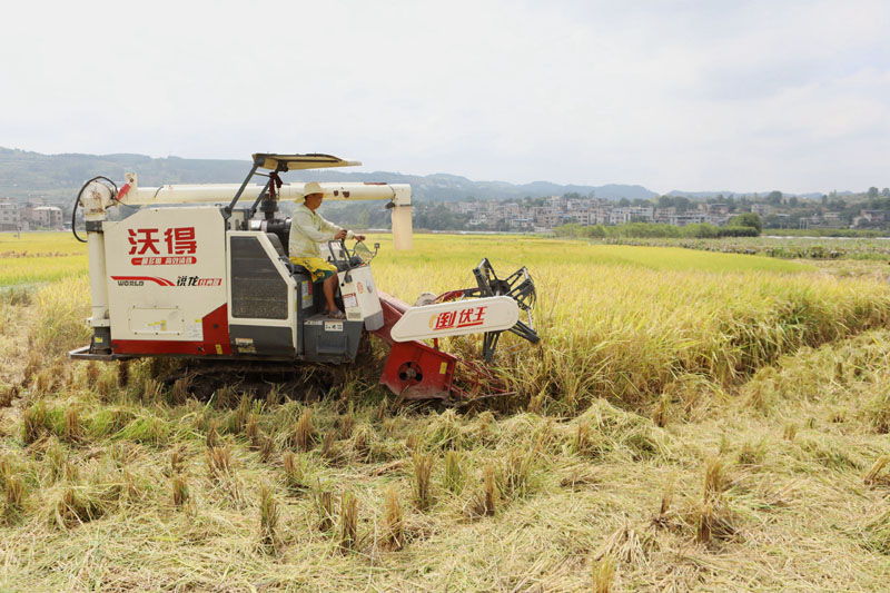 9月6日,农机手驾驶收割机在贵州省黔东南苗族侗族自治州施秉县城关镇伍旗村收割水稻。