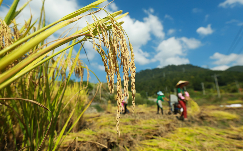 9月6日,村民在贵州省都匀市匀东镇马寨村稻田里收割水稻。