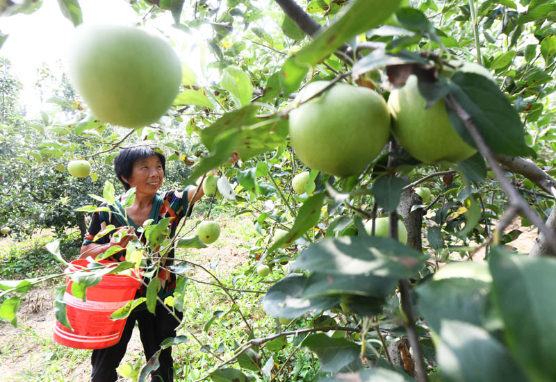 9月6日,河北省石家庄化皮镇辛合庄村果农在采摘苹果。