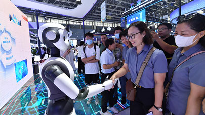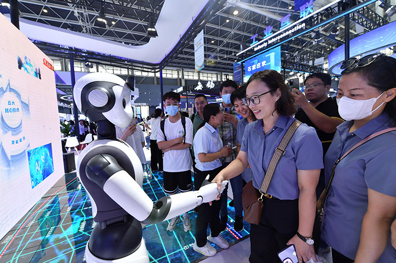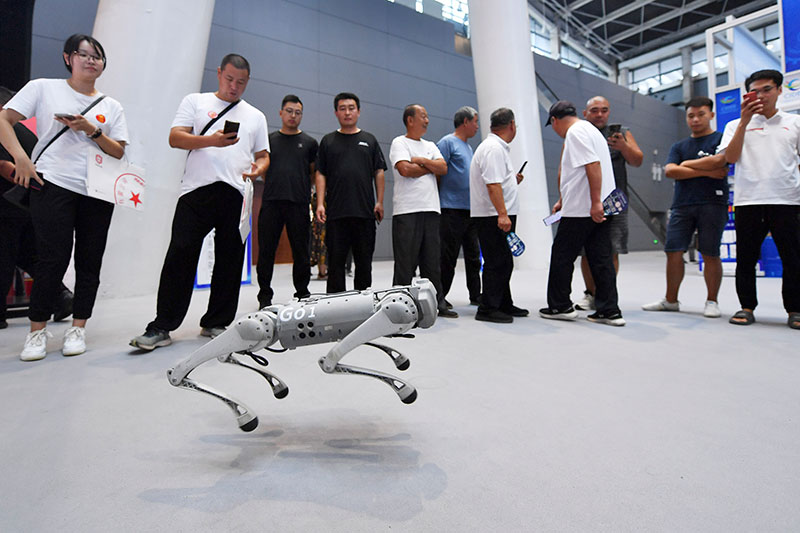 在2023中国国际数字经济博览会现场,各种机器人产品亮相展区,吸引观众驻足参观,感受智能机器人的科技魅力。