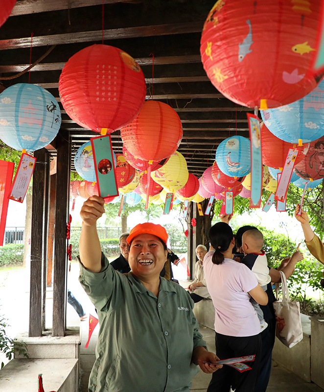9月26日,人们在安徽省合肥市肥西县上派镇潭冲社区猜灯谜。