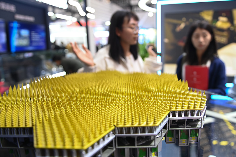 11月7日,观众在之江实验室展台了解射频相场望远镜核心单元。