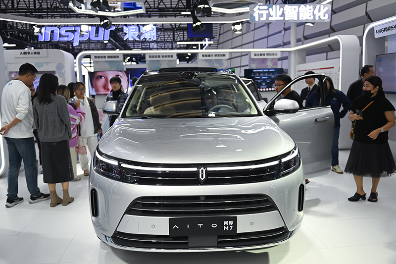 11月7日,观众在“互联网之光”博览会上参观问界汽车。