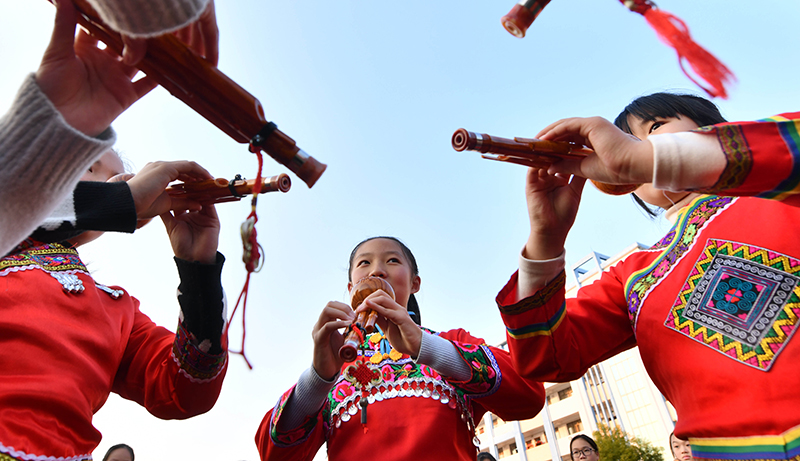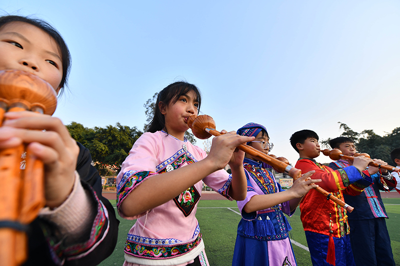 近年来,广西柳州市在开展民族团结进步文化进校园活动中,将葫芦丝、竹竿舞、芦笙、书法、山歌等传统文化引进课堂,让孩子们在传承优秀中华文化的同时,接受民族团结进步教育,铸牢中华民族共同体意识。