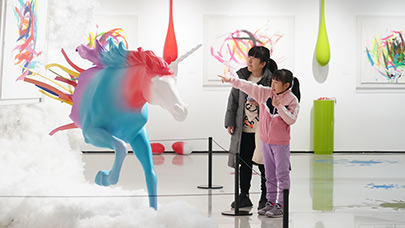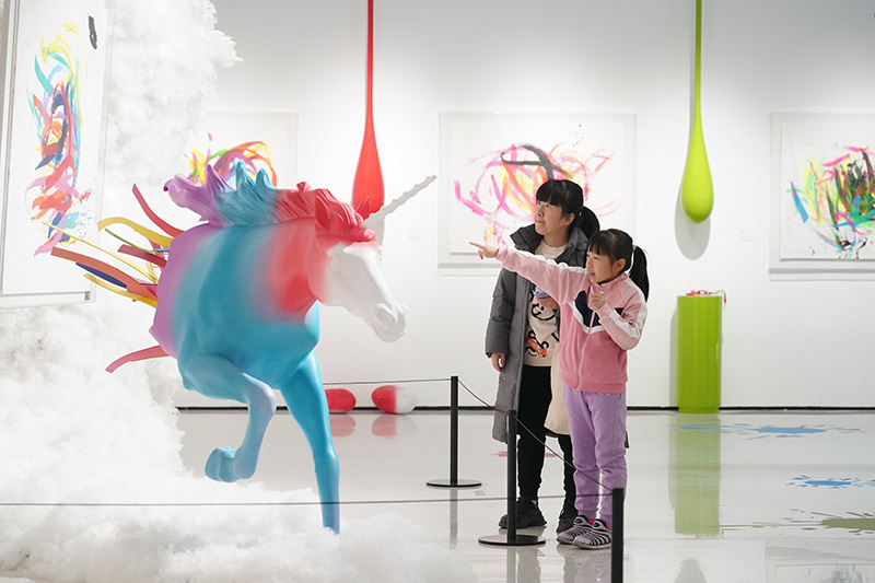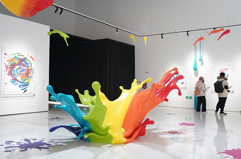 12月30日,观众在位于北京市海淀区的北京时代美术馆观看《谢谢你,色彩》艺术展。