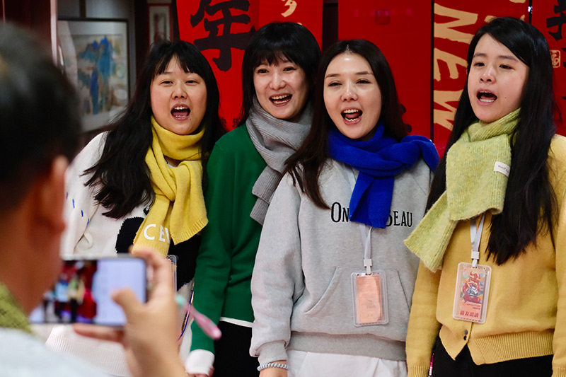 12月30日,游客在首趟环秦岭跨年主题旅游专列上合影留念。本趟列车搭乘300多名旅客,将途经西安、安康、汉中等城市。