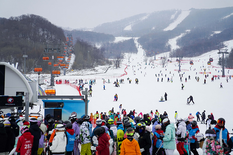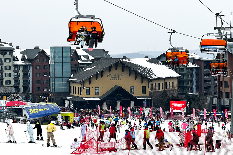 12月30日,滑雪爱好者在吉林省吉林市万科松花湖度假区滑雪。
