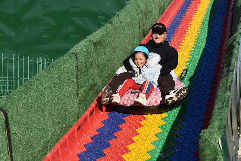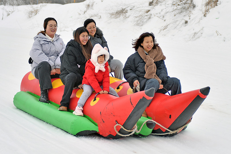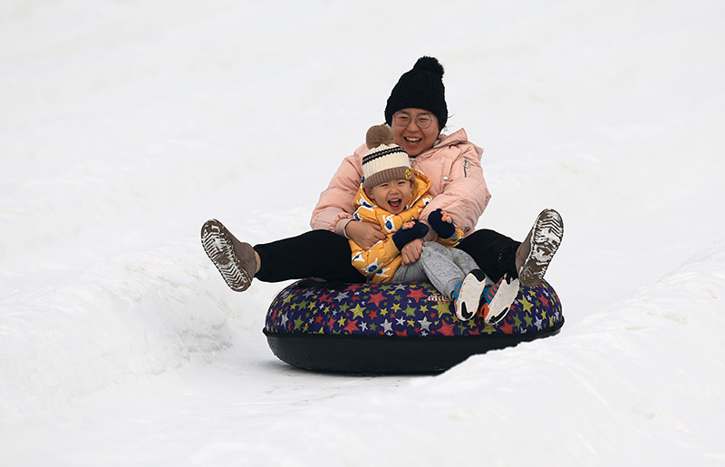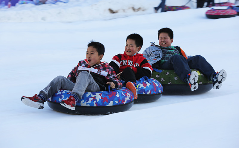12月30日,游客在河北省石家庄市正定县冰雪嘉年华玩雪圈。