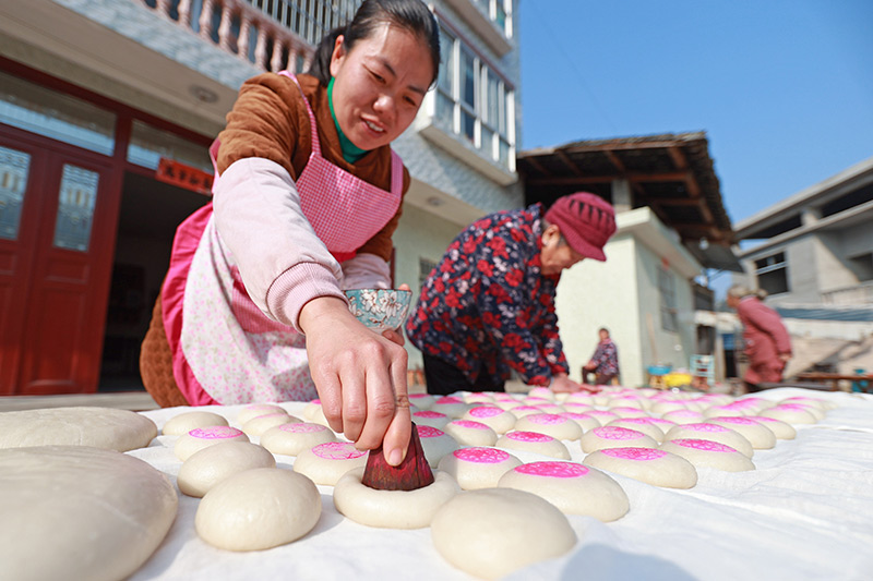 12月30日,贵州省黔东南苗族侗族自治州岑巩县注溪镇六部屯村村民在制作糯米糍粑。