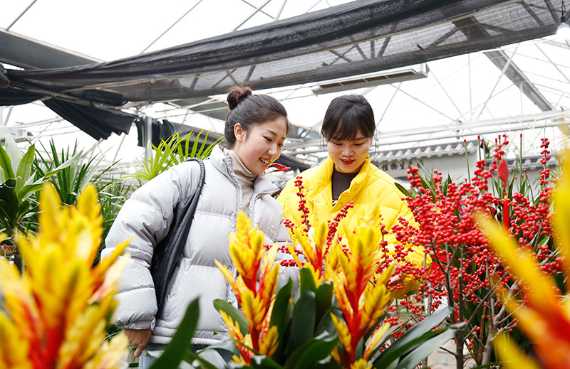 12月30日,市民在河北省邢台市襄都区一家花卉市场选购鲜花。