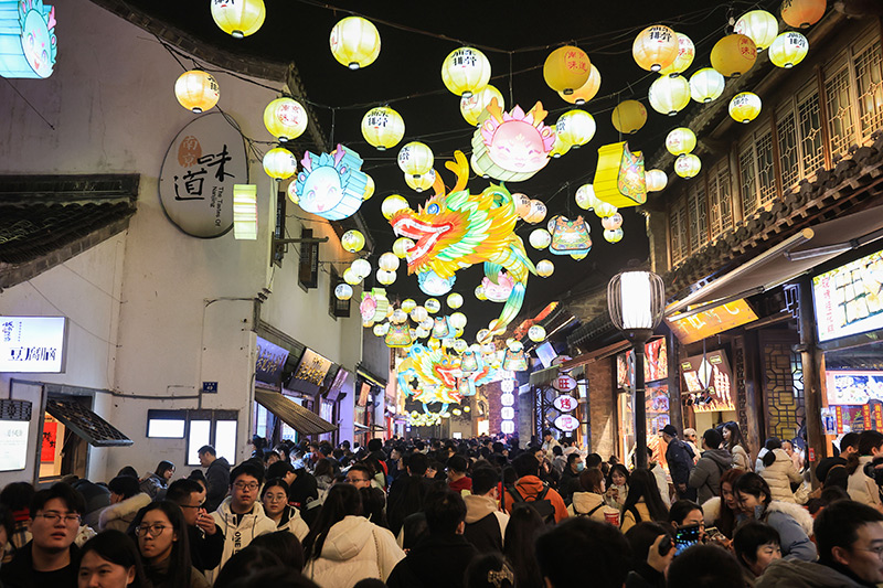 12月30日,游人在江苏省南京市老门东景区赏灯游览。