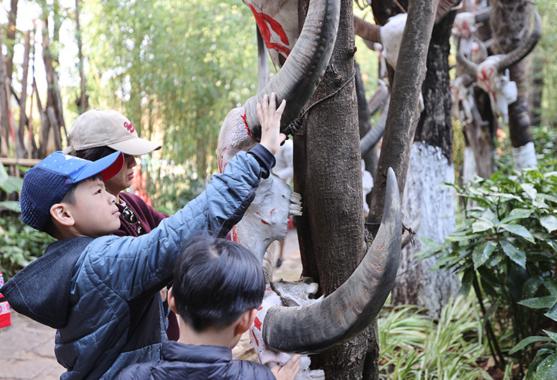 12月30日,游人在云南省昆明市云南民族村游玩。