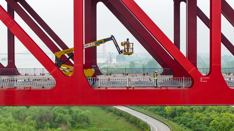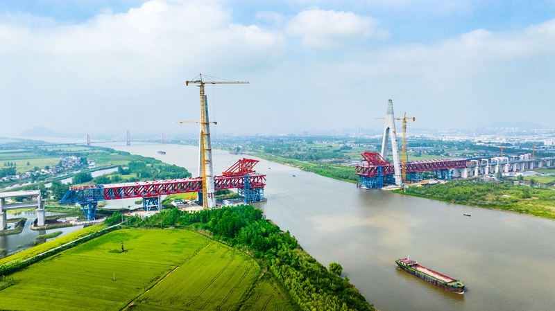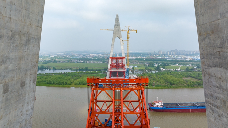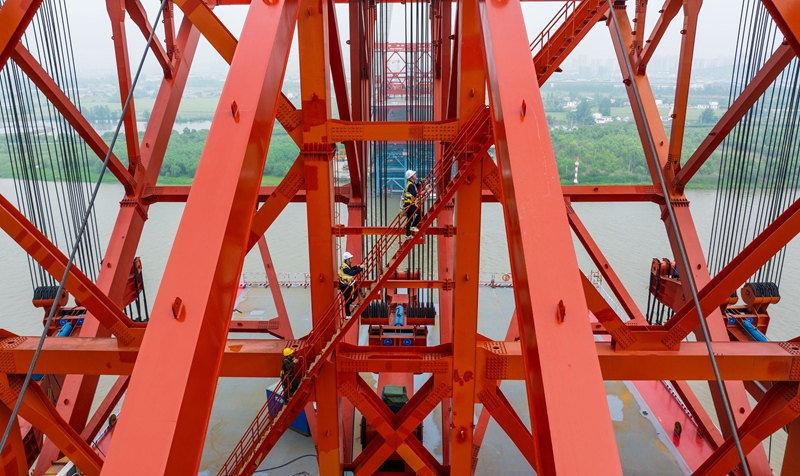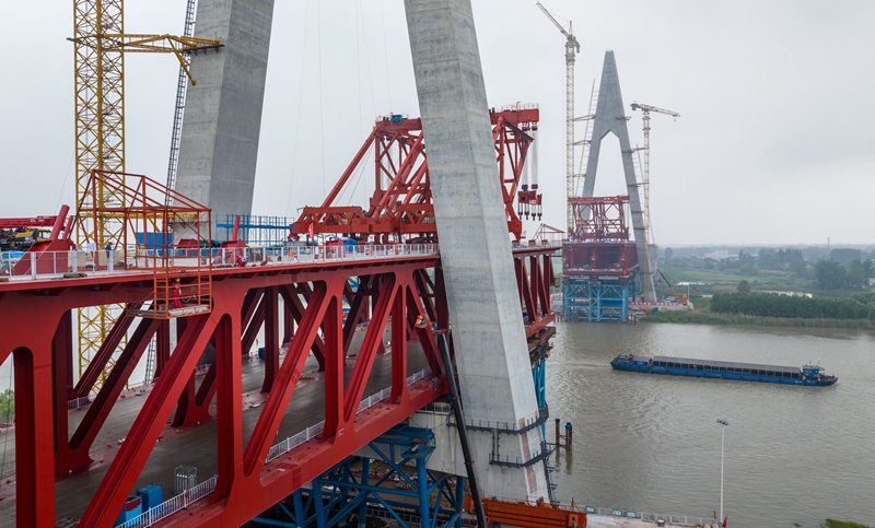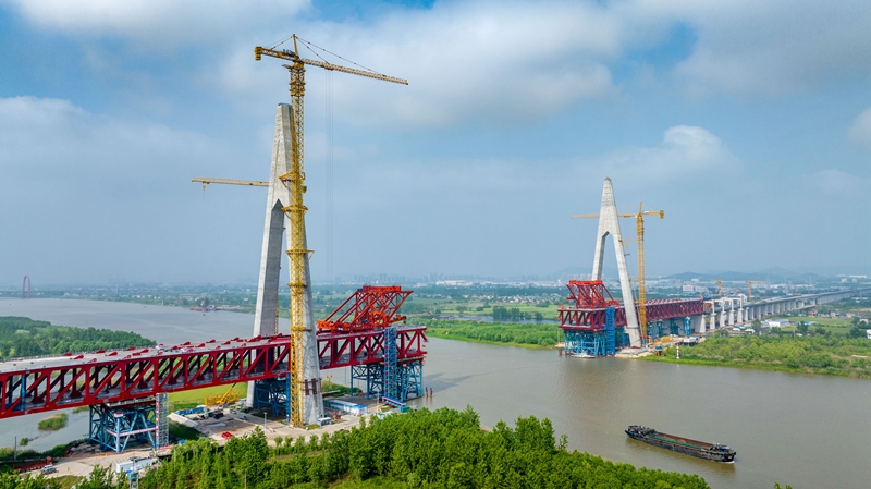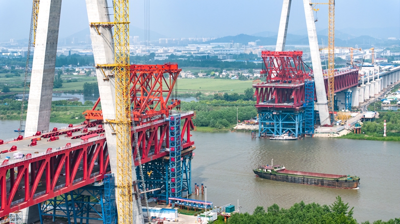 “五一”国际劳动节前,由中铁四局承建的位于安徽省马鞍山市当涂县的巢马铁路马鞍山长江公铁大桥副汊航道桥施工现场一派繁忙,施工人员奋战在建设一线,确保重点工程建设进展顺利。