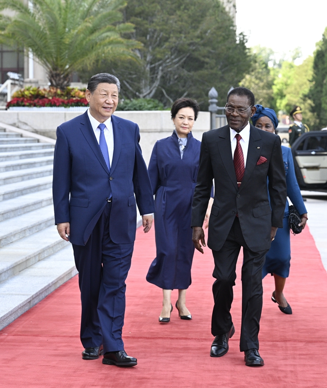 5月28日下午,国家主席习近平在北京人民大会堂同来华进行国事访问的赤道几内亚总统奥比昂举行会谈。